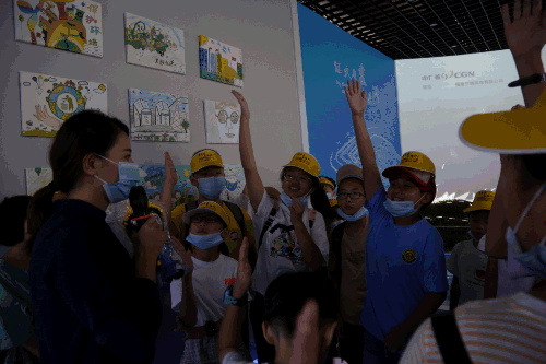 在核能會展中心,同學們帶著“核能是怎麼轉化為電能”“核電站的選址有什麼講究”“核燃料是怎麼裝到機組裏的”一連串問題,向講解員提問。他們了解到了核電發電原理、核燃料裝卸過程、核電基本知識等,並現場體驗了VR設備,模擬走進核電廠房,身臨其境地觀看廠房內部結構。