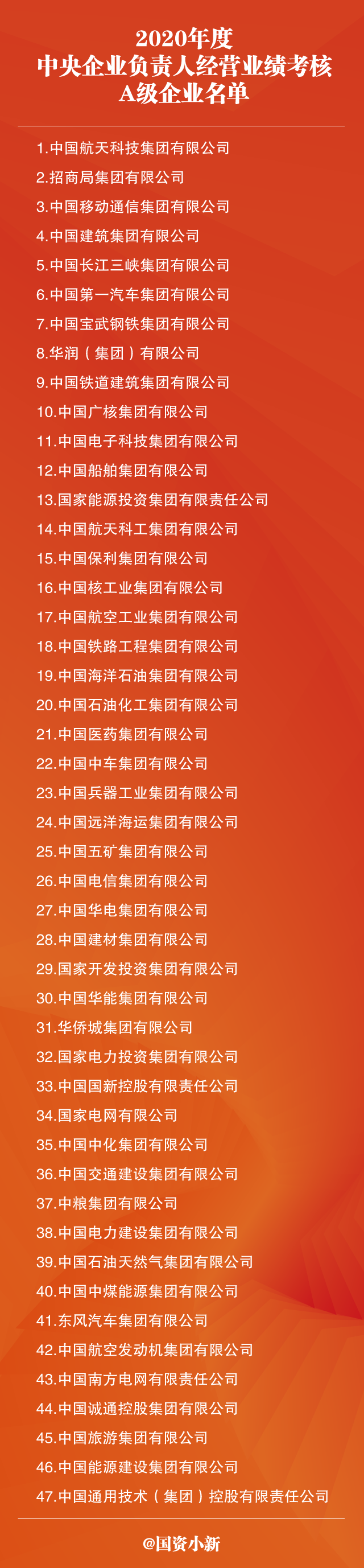 附2020年度中央企業負責人經營業績考核A級企業名單: