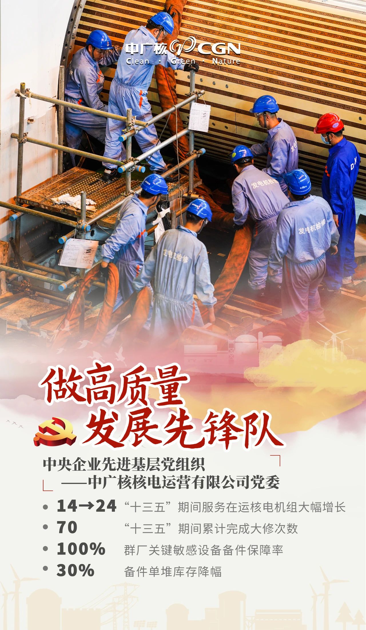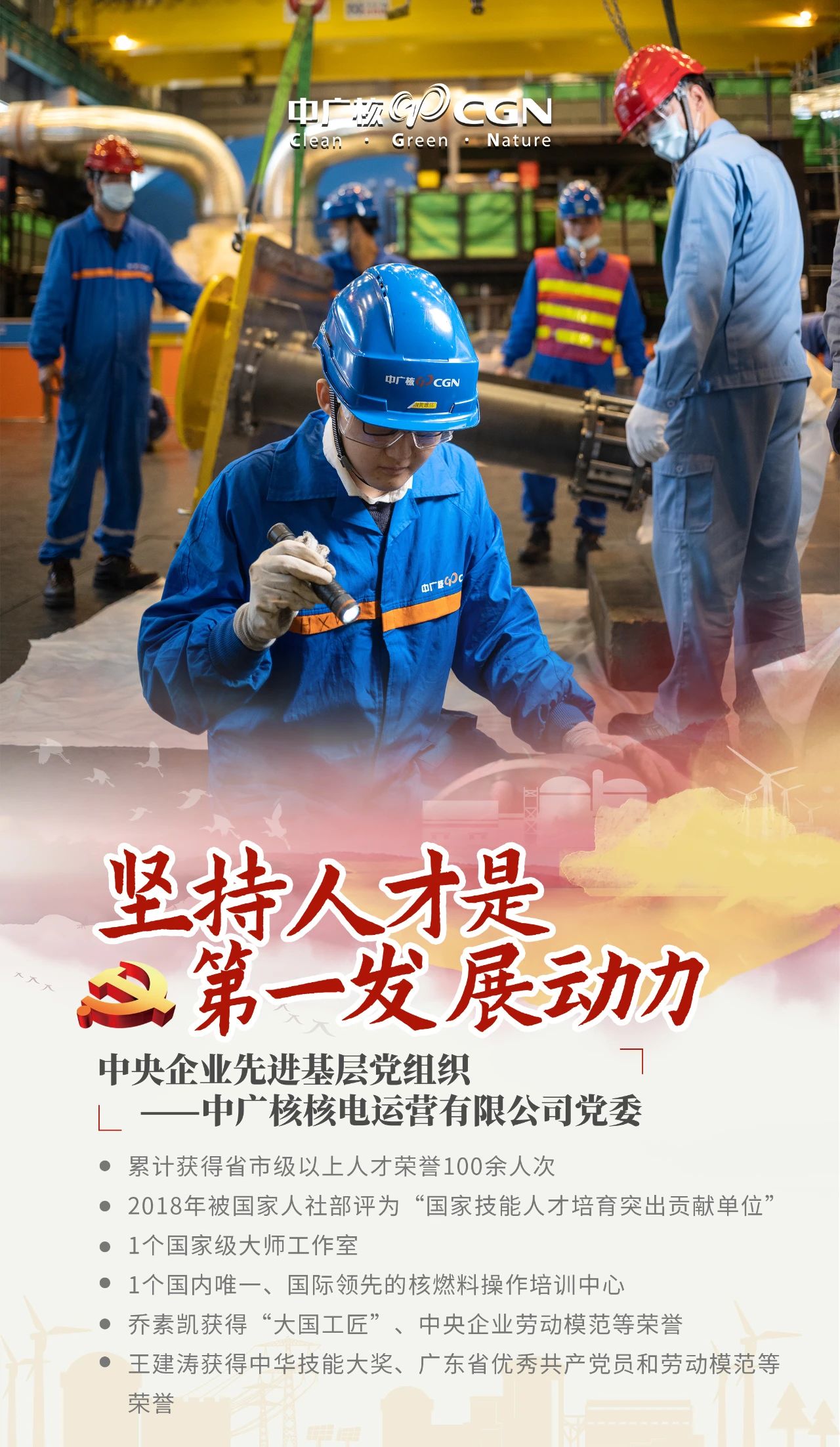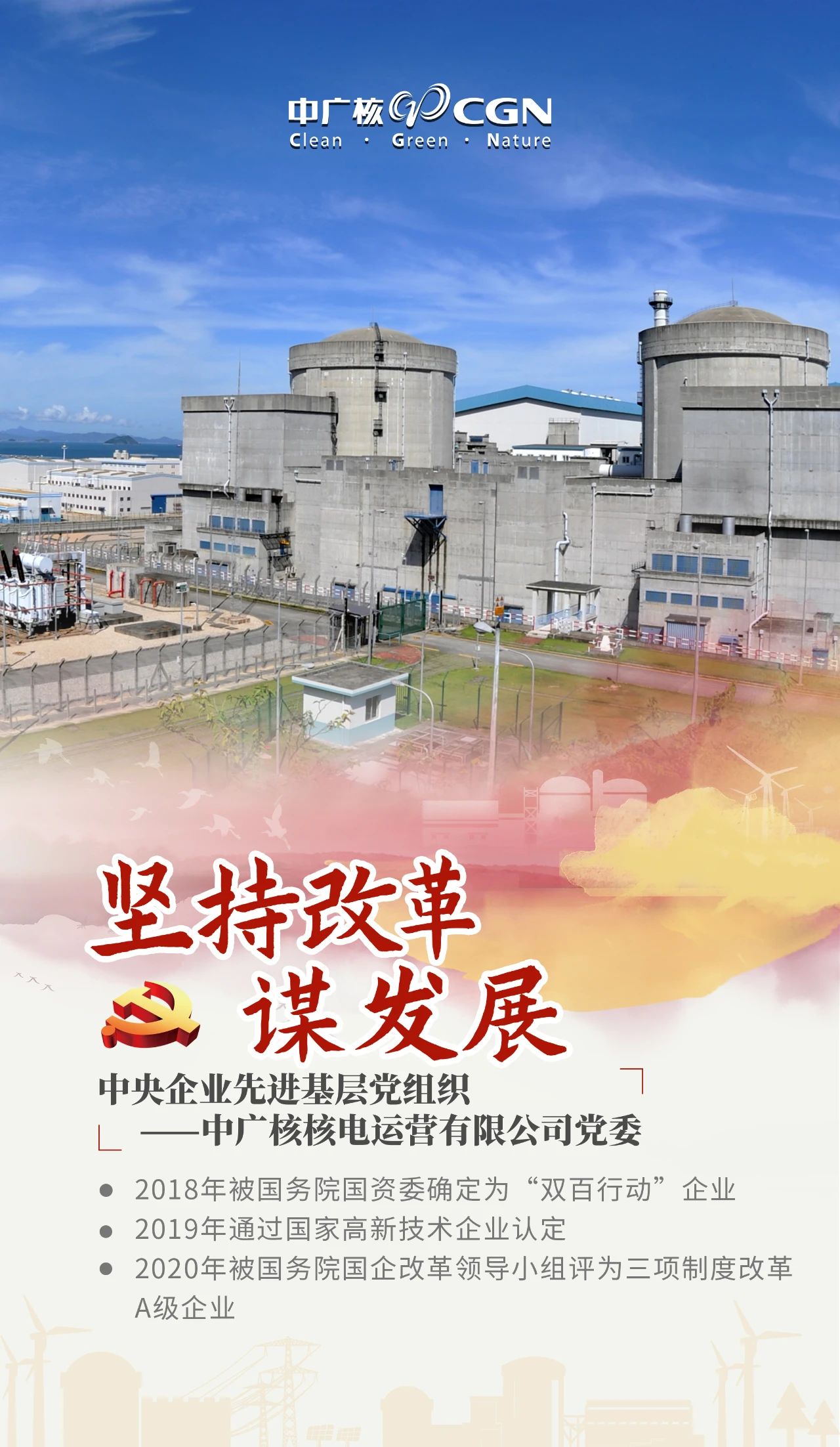 2021年7月12日,在國務院國資委黨委召開的中央企業“兩優一先”表彰大會上,中廣核核電運營有限公司(簡稱“運營公司”)黨委被國務院國資委黨委授予“中央企業先進基層黨組織”稱號。