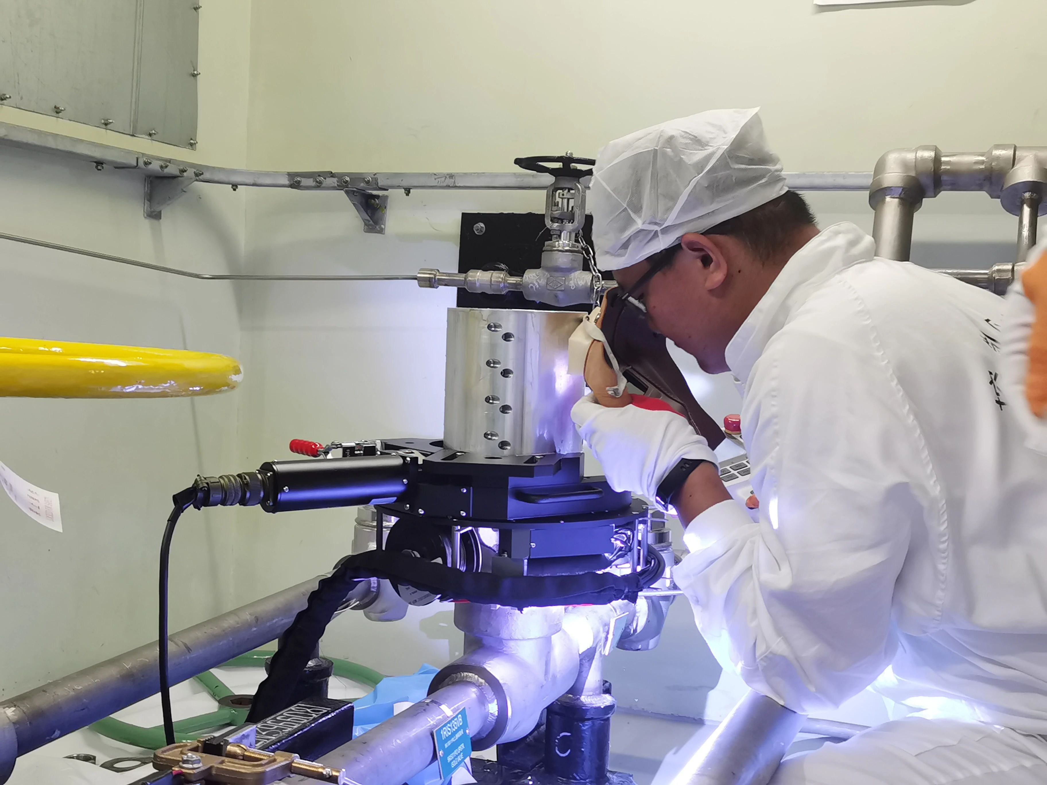為(wei)改(gai)善(shan)核(he)級(ji)唇(chun)焊(han)密(mi)封(feng)閥(fa)門(men)解(jie)體(ti)維(wei)修(xiu)手(shou)動(dong)切(qie)割(ge)的(de)現(xian)狀(zhuang),由(you)靜(jing)止(zhi)機(ji)械(xie)部(bu)黨(dang)支(zhi)部(bu)的(de)黨(dang)員(yuan)組(zu)成(cheng)唇(chun)焊(han)閥(fa)門(men)自(zi)動(dong)化(hua)切(qie)割(ge)工(gong)具(ju)研(yan)究(jiu)項(xiang)目(mu)組(zu),成(cheng)功(gong)開(kai)發(fa)出(chu)一(yi)套(tao)動(dong)力(li)型(xing)切(qie)割(ge)工(gong)具(ju),並(bing)在(zai)今(jin)年(nian)8月的大修中應用,實現了自動化切割。切割總耗時不到25分鍾,相比較傳統手工切割,效率至少提升50%,顯著縮短了人員現場作業時間,有效提升了切割質量。