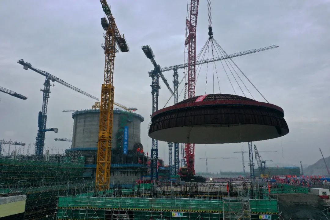 12月24日,中國廣核集團(簡稱“中廣核”)廣東太平嶺核電項目1號機組順利完成穹頂吊裝,標誌著該項目從土建施工階段全麵轉入設備安裝階段,為進一步高質量穩步推進工程建設奠定了基礎。
