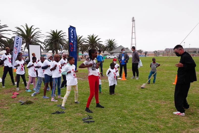 “我愛中國!”在納米比亞斯瓦科普蒙德的Vineta露天體育場,一陣陣歡呼聲此起彼伏。4月的第三個周末,中廣核鈾業發展有限公司所屬中廣核鈾業斯科有限公司以“手牽手追求卓越”為wei主zhu題ti舉ju辦ban中zhong華hua文wen化hua海hai外wai傳chuan播bo活huo動dong,吸xi引yin當dang地di近jin千qian人ren關guan注zhu。斯si科ke公gong司si十shi餘yu名ming誌zhi願yuan者zhe參can與yu組zu織zhi,讓rang豐feng富fu多duo彩cai的de中zhong國guo傳chuan統tong文wen化hua再zai次ci走zou進jin外wai國guo友you人ren的de視shi野ye。