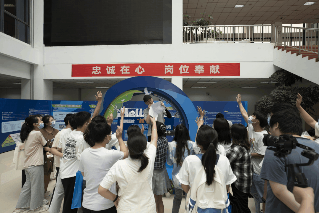 互動體驗遊戲圍繞“愛護地球、安全文化、增長知識”的主題展開,寧德核電綜管黨支部的誌願者組織師生參與到各個互動遊戲中來。