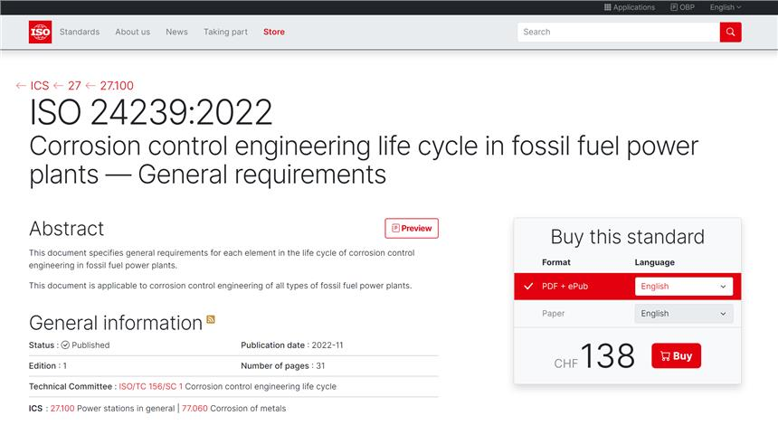 ISO 24239國際標準是由中國倡議並主導構建的國際腐蝕控製工程全生命周期標準體係框架下的一項重要標準化成果,是“腐蝕控製整體工程化”“全生命周期管理”理念同腐蝕控製科學技術成果、優you秀xiu工gong程cheng實shi踐jian相xiang融rong合he,並bing首shou次ci在zai具ju體ti行xing業ye中zhong實shi施shi技ji術shu標biao準zhun化hua的de成cheng功gong探tan索suo。該gai標biao準zhun以yi發fa電dian廠chang腐fu蝕shi控kong製zhi工gong程cheng為wei對dui象xiang,對dui其qi全quan生sheng命ming周zhou期qi涉she及ji的de腐fu蝕shi源yuan、材料、設計、製造、安裝、調試、運行、報廢等18個技術要素作出了標準化規定,以期全麵、有效控製電廠係統設備的腐蝕危害,標準的發布為提升全世界範圍內電力係統設備腐蝕控製成效提供了技術遵循,進而實現電廠安全、經濟、長周期運行和綠色保護的總體目標。