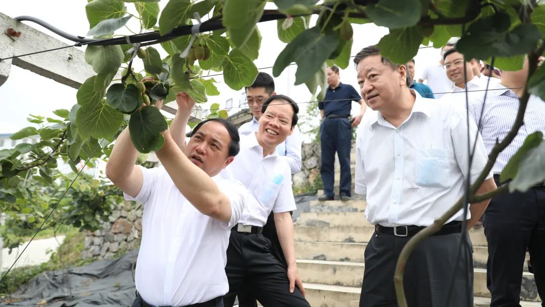 ▲中廣核黨委書記、董事長楊長利到廣西樂業縣甘田鎮板洪村脫貧奔康產業園詳細了解產業園運營模式、分布情況及幫扶成效