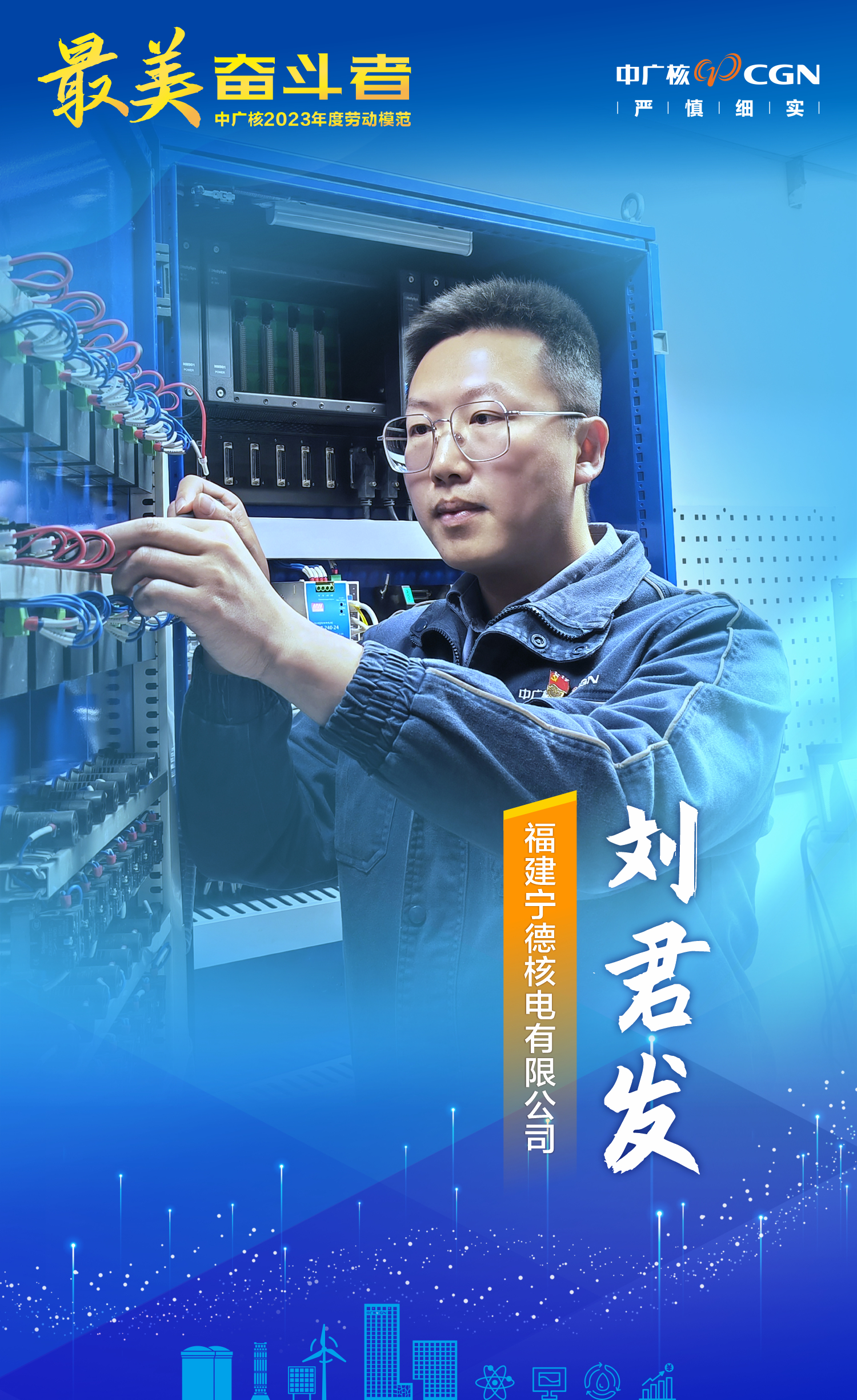 劉君發深耕數字化儀控運維13年,負責自主實施寧德核電一期四台機組數字化儀控係統運維及平台改造,發現並解決技術難題100餘項。他牽頭數字化儀控係統創新優化攻堅隊,帶領團隊自主完成150餘項優化,取得2項實用新型專利、2項軟件著作權。曾先後獲福建省金牌工人、福建省青年崗位能手、集團優秀共產黨員、集團十佳青年標兵、集團技術能手等榮譽稱號。