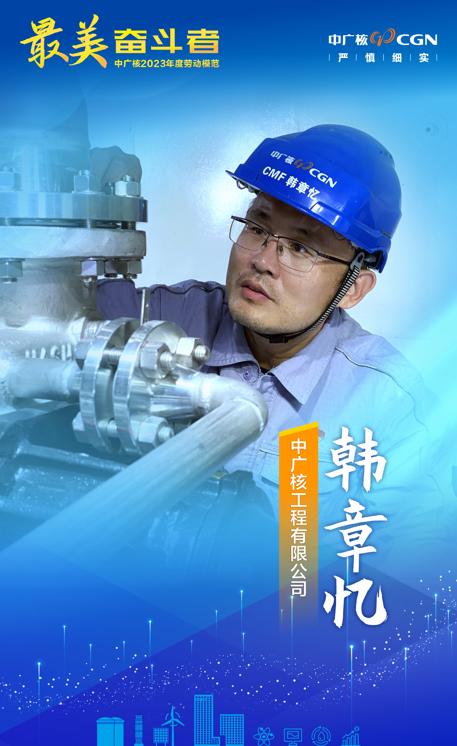 韓章憶深耕核電工程一線14年,先後參與4個核電項目10台機組建設。他帶領施工團隊高標準完成主蒸汽隔離閥、蒸汽發生器二次側水壓試驗以及管線無損檢測和保溫安裝工作,助力防城港核電站3號機組冷試、熱試、裝料、並網等重要節點目標實現。他帶領施工團隊全力推進核島土建收尾、核島安裝上量,以標杆班組創建為抓手,提升安全質量管控力度,推動防城港核電站4號機組實現冷、熱試階段性創優。帶領的班組榮獲集團安全質量標杆班組,個人榮獲集團青年標兵等榮譽。