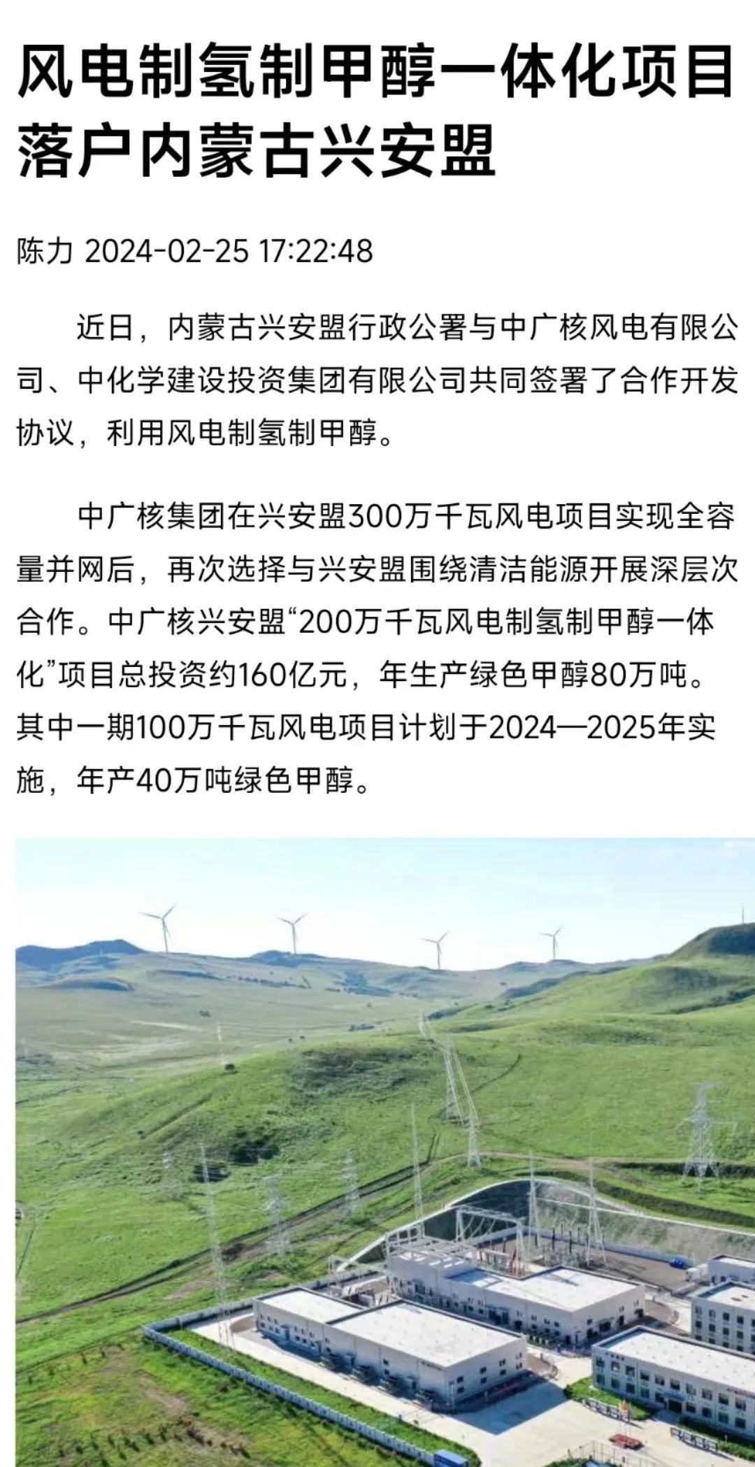 風電製氫製甲醇一體化項目