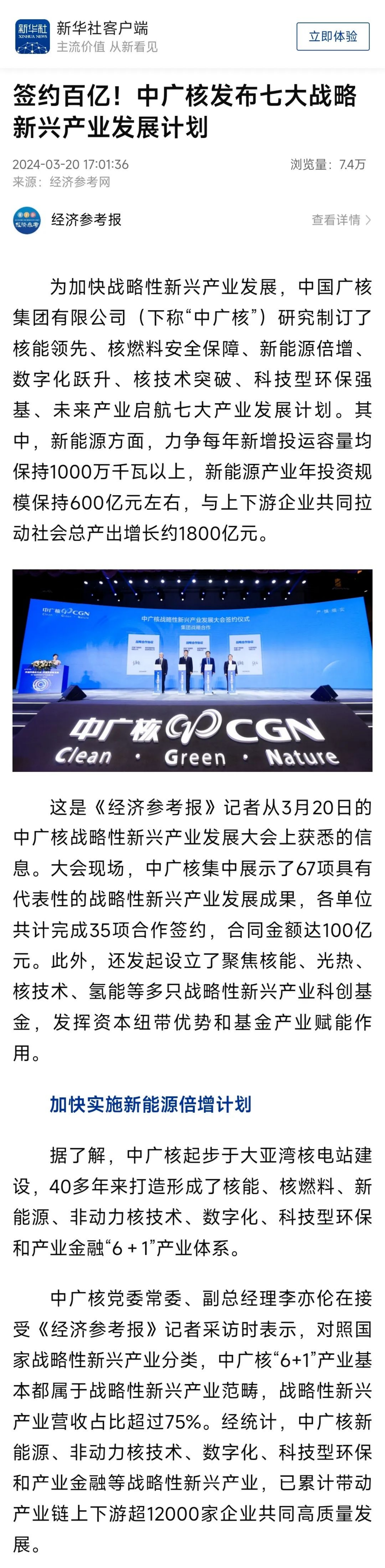 中廣核新能源、非動力核技術、數字化、科技型環保和產業金融等戰略性新興產業,已累計帶動產業鏈上下遊超12000家企業共同高質量發展。人民日報、新華社等主流媒體聚焦報道。