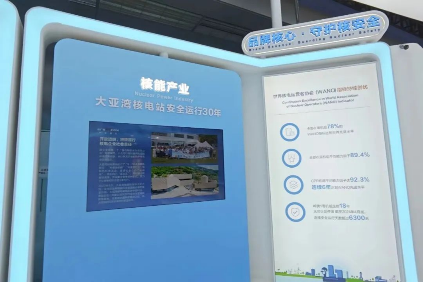 中廣核展台以“創建以核能為特色的世界一流清潔能源企業”為主題,圍繞“安全、綠色、創新、擔當”核心品牌內涵,全麵展示了中廣核在核能安全、綠色發展、科技創新和社會責任等方麵的擔當與成效。