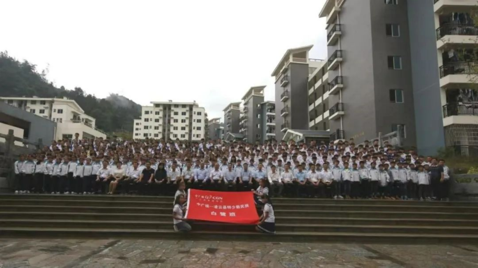 ▲2017年10月,中廣核首期教育幫扶白鷺班——“中廣核-淩雲縣特少數民族白鷺班”開班儀式在廣西淩雲縣中學舉行