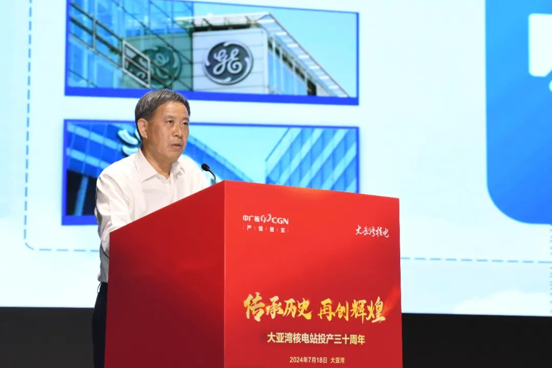 集團公司原黨組書記、董事長昝雲龍在致辭中回顧了當年老一輩核電人和眾多國內外專家從五湖四海彙聚到深圳,曆經千辛萬苦、千言萬語、千qian方fang百bai計ji,最zui終zhong成cheng功gong建jian設she大da亞ya灣wan核he電dian站zhan的de光guang輝hui曆li程cheng。他ta們men以yi高gao度du的de責ze任ren感gan和he專zhuan業ye精jing神shen,為wei核he電dian站zhan的de高gao標biao準zhun建jian設she投tou入ru了le巨ju大da心xin血xue,也ye為wei大da亞ya灣wan核he電dian站zhan30年nian來lai的de安an全quan穩wen定ding運yun行xing奠dian定ding了le堅jian實shi基ji礎chu。同tong時shi,昝zan雲yun龍long寄ji語yu核he電dian從cong業ye者zhe,既ji要yao傳chuan承cheng前qian人ren的de寶bao貴gui經jing驗yan,也ye要yao發fa揮hui自zi己ji的de優you勢shi和he創chuang新xin精jing神shen,做zuo到dao“青出於藍而勝於藍”,為我國核電事業和國家“碳達峰、碳中和”戰略達成作出新的貢獻。