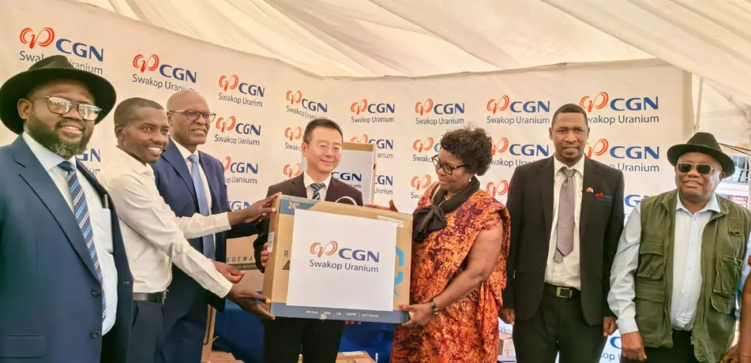 近日,中廣核鈾業下屬斯科公司為納米比亞Ohangwena(奧漢圭納)省Lazarus Haufiku學校(拉紮盧斯豪菲庫聯合學校)捐贈的計算機房投用儀式在位於納米比亞和安哥拉邊境交界處的Lazarus Haufiku學校舉行。本次儀式上,斯科公司捐贈了16台電腦、1台大型打印機,並正式啟用全新建設的學校圍欄。納米比亞教育文化藝術部長Ester Anna Nghipondoka(安娜·恩吉蓬多卡)、礦業能源部部長Tom Alweendo(湯姆·阿爾溫多),Ohangwena省省長Sebastian Ndeitunga(塞巴斯蒂安·內通加)、省教育廳廳長、Lazarus Haufiku學校以及周邊學校校長和全校師生等600餘人出席了捐贈儀式。