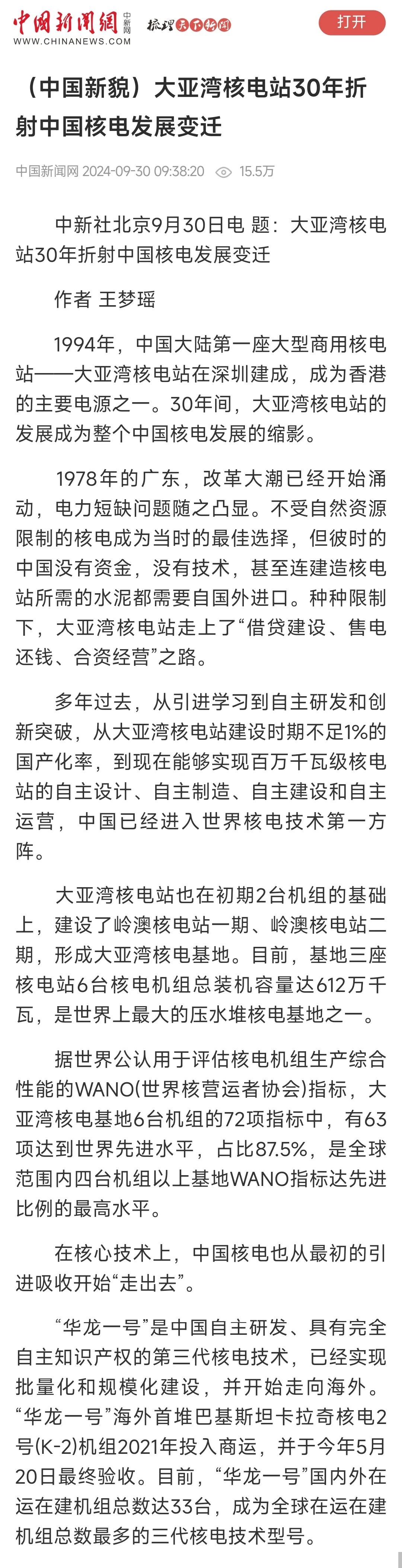 聚焦報道了中廣核從大亞灣核電站起步