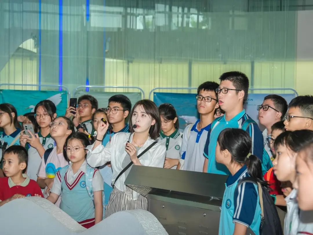 隨後,大家來到台山核電基地附近的中華白海豚科普館。白海豚被譽為“海上大熊貓”,館內的白海豚標本和有趣的講解,讓大家深入了解了這些可愛生物的生活習性,以及它們與核電基地和諧共生的關係。