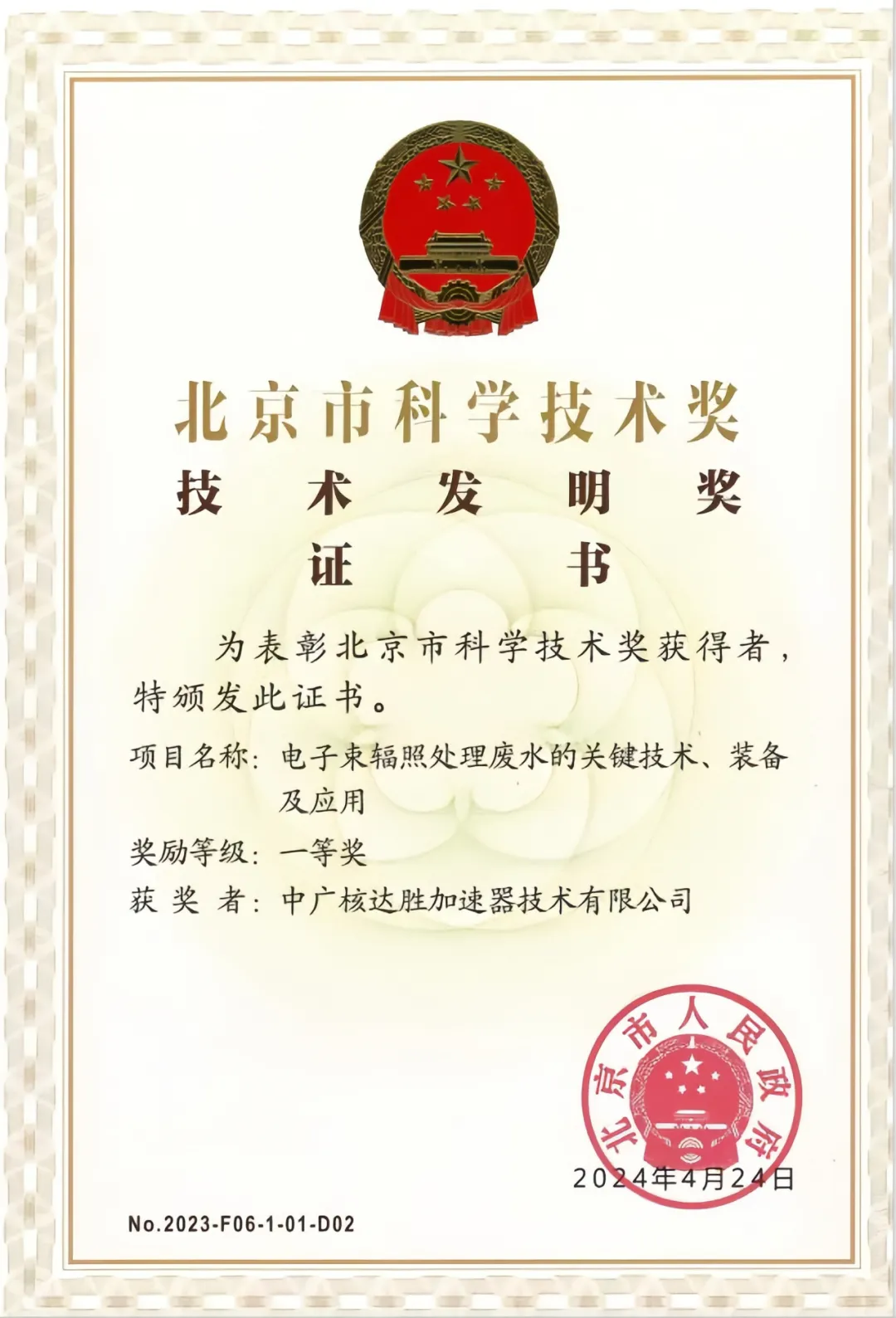 近期,中廣核連續收獲科學技術領域獎項!在11月19日召開的北京市科技大會暨科學技術獎勵大會上,由清華大學提名,中廣核技下屬達勝加速器技術有限公司、達勝科技有限公司參與完成的“電子束輻照處理廢水的關鍵技術、裝備及應用”項目斬獲北京市科學技術獎技術發明獎一等獎。此外,從蘇州市科技局也傳來喜訊,蘇州熱工研究院有限公司牽頭完成的“核能用先進去汙、防護及處理一體化關鍵技術研發及應用”項目榮獲江蘇省科學技術獎三等獎。