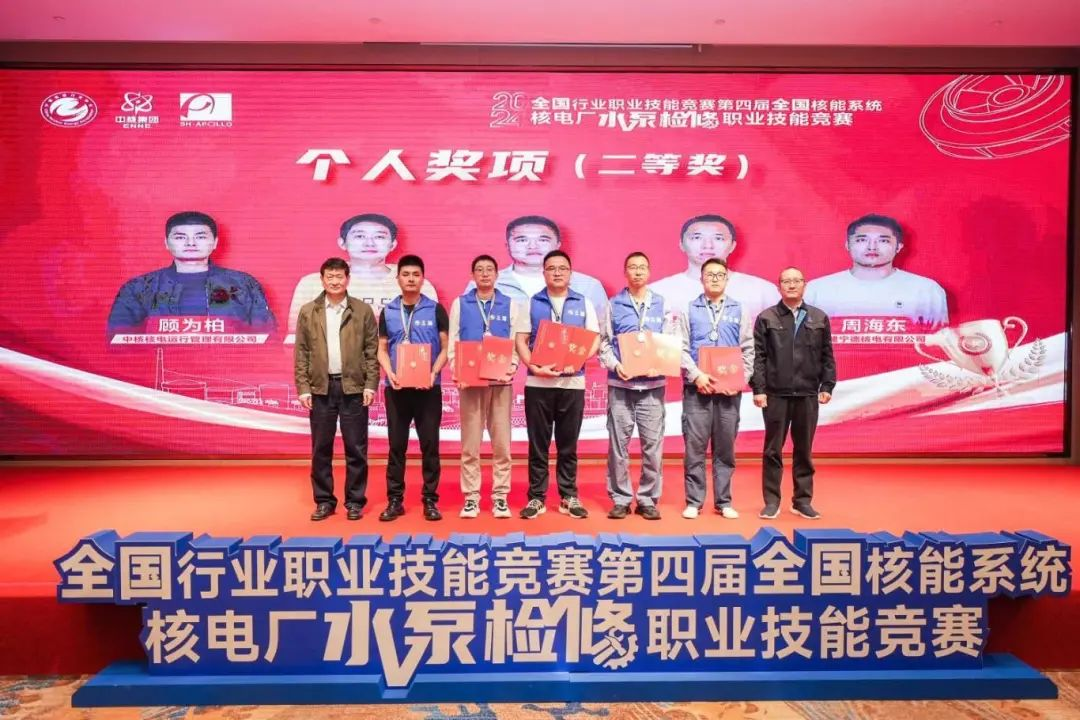 10月25日至30日,2024年全國行業職業技能競賽——第四屆全國核能係統核電廠水泵檢修職業技能競賽在上海舉辦,來自全國核能行業係統的11支隊伍、33名選手參賽。經過激烈角逐,中廣核參賽選手們憑借紮實的技能基礎和良好的現場發揮,取得個人二等獎2項(寧德核電郝一飛、周海東),個人三等獎2項(中廣核運營陳禕、屈福林、寧德核電張波、王亞男、防城港核電尹忠廣),團體亞軍(中廣核三隊:寧德核電),展現了集團員工在核電廠水泵檢修領域的精湛的技藝和團隊協作精神。