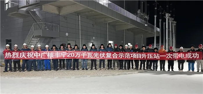 12月3日18時18分,中廣核豐寧滿族自治縣20萬千瓦光伏複合示範項目升壓站一次帶電成功。