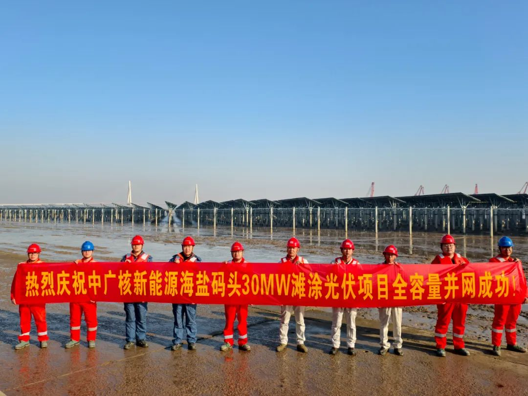 近日,中廣核海鹽碼頭灘塗光伏項目實現全容量並網。