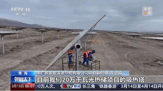 中廣核新能源德令哈有限公司項目副經理 齊金國:目前,我們20萬千瓦光熱儲能項目的吸熱塔、主廠房等主體結構已順利封頂,預計將於五月中下旬全部安裝完成。