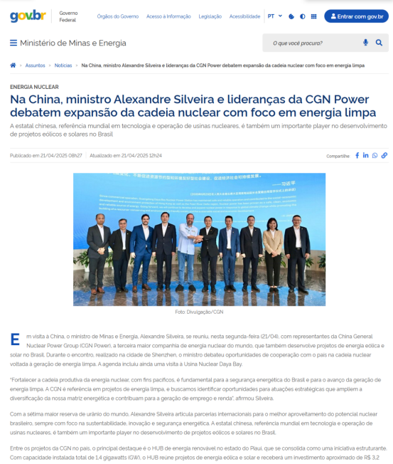 ▲巴西政府官網於當地時間4月21日報道了此次考察交流活動。