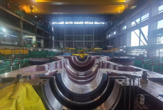 汽輪機高中壓缸下半順利吊裝就位
