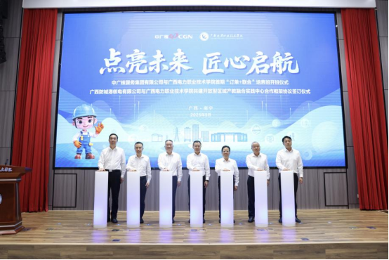 調研期間,高立剛還參加了中廣核服、防城港核電與廣西電力職業技術學院聯合舉辦的“點亮未來,匠心啟航”企校合作啟動儀式。集團所屬單位創新嚐試將“鄉村振興”這一“國之大者”與“產業工人隊伍建設”這一製造強國根基工程緊密融合,持續探索以人才賦能推動地方發展與產業振興的新路徑。