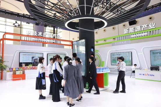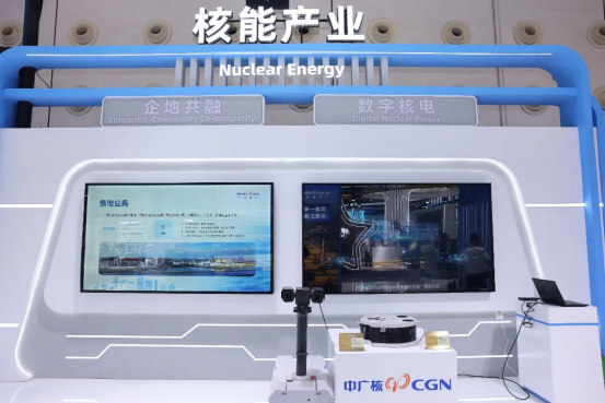 中廣核以“清潔能源點亮東盟綠廊、科創合力築就共融新程”為主題,攜大國重器“華龍一號”、核電神經中樞“和睦係統”、核電智能機器人等數智發展成果,以及新能源融合項目全息櫃、核技術應用係列科創成果亮相本屆東博會。