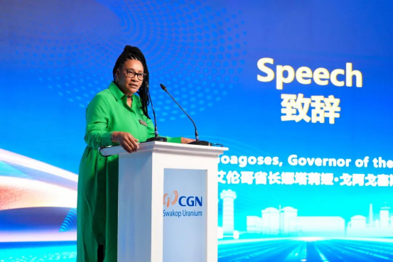 李曆在致辭中表示,中廣核自2012年開始,在納米比亞投資建設運營全球第三大鈾礦——湖山鈾礦,目前已成為納米比亞“國家名片”“一帶一路”標誌性工程和中納兩國互利共贏合作的典範項目。在見證、參與、推動中納兩國偉大友誼的過程中,中廣核始終心懷“三個美好願望”:一是將湖山鈾礦建設成為世界一流“綠色礦山”,二是將湖山鈾礦打造成為“共建共享”典範,三是將湖山鈾礦打造成為“文化融合”標杆。她強調,未來中廣核將始終以“發展清潔能源,造福人類社會”為使命,深化中納能源合作,讓湖山項目持續煥發活力,讓清潔能源之光照進更多家庭,為譜寫中納友好新篇章、構建中非命運共同體貢獻更大力量,中廣核願與全球同行攜手並進,共同開創清潔能源發展的美好未來。
