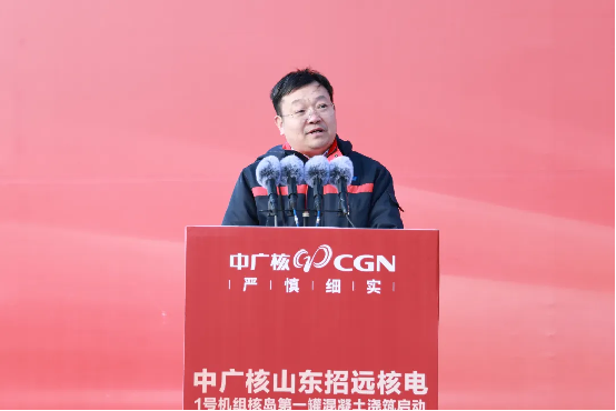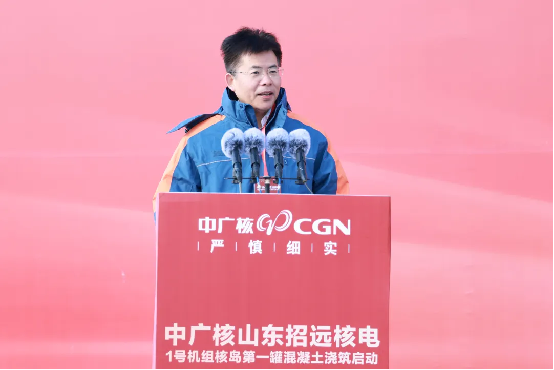 龐鬆濤代表集團公司對項目建設全麵啟動表示祝賀,對國家相關部委、山東省各級黨委和政府給予的指導支持,以及合作夥伴、一線建設者的辛勤付出表示感謝。他指出,作為中廣核第十個核電基地,招遠核電項目的高質量推進意義深遠,不僅為集團“十四五”目標實現提供了有力支撐,為“十五五”開篇布局築牢根基,更為山東加快構建新型能源體係注入強勁動力,為保障國家能源安全、實現“雙碳”目標貢獻中廣核力量。他對全體建設團隊提出三點要求:一要提高政治站位,深學篤行習近平總書記對核電行業和中廣核的重要指示批示精神,堅守“安全第一、質量第一、追求卓越”原yuan則ze,嚴yan守shou安an全quan生sheng產chan紅hong線xian,確que保bao核he安an全quan絕jue無wu一yi失shi。二er要yao聚ju焦jiao關guan鍵jian技ji術shu攻gong關guan與yu數shu字zi化hua轉zhuan型xing,創chuang新xin核he能neng綜zong合he利li用yong模mo式shi,形xing成cheng可ke複fu製zhi推tui廣guang的de技ji術shu和he管guan理li經jing驗yan,持chi續xu迭die代dai提ti升sheng建jian設she水shui平ping。三san是shi要yao立li足zu“高標準打造百年精品工程”定位,深度融入地方能源規劃,積極培育核風光儲一體化清潔能源產業集群與新質生產力,助力山東省能源綠色低碳轉型。