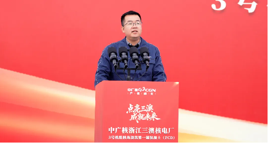 李寧代表溫州市委、市政府,對3號機組主體工程開工建設表示祝賀。他指出,3號機組核島FCD標誌著三澳核電二期項目建設邁入提速新階段,對溫州加快打造全省新型能源體係先行示範區、全國新能源產能中心和應用示範城市具有重要意義,溫州市委、市政府將始終秉持“靠前服務、精準保障”理念,為項目保駕護航,希望蒼南核電高標準、嚴要求做好工程安全、質量和進度管控,將項目打造成為經得起曆史和實踐檢驗的精品工程、陽光工程、央地合作示範工程,為國家新型能源體係建設貢獻溫州力量。