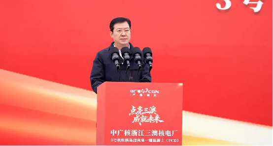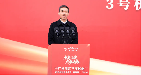 李寧代表溫州市委、市政府,對3號機組主體工程開工建設表示祝賀。他指出,3號機組核島FCD標誌著三澳核電二期項目建設邁入提速新階段,對溫州加快打造全省新型能源體係先行示範區、全國新能源產能中心和應用示範城市具有重要意義,溫州市委、市政府將始終秉持“靠前服務、精準保障”理念,為項目保駕護航,希望蒼南核電高標準、嚴要求做好工程安全、質量和進度管控,將項目打造成為經得起曆史和實踐檢驗的精品工程、陽光工程、央地合作示範工程,為國家新型能源體係建設貢獻溫州力量。