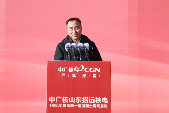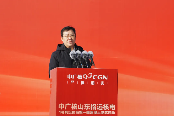 龐鬆濤代表集團公司對項目建設全麵啟動表示祝賀,對國家相關部委、山東省各級黨委和政府給予的指導支持,以及合作夥伴、一線建設者的辛勤付出表示感謝。他指出,作為中廣核第十個核電基地,招遠核電項目的高質量推進意義深遠,不僅為集團“十四五”目標實現提供了有力支撐,為“十五五”開篇布局築牢根基,更為山東加快構建新型能源體係注入強勁動力,為保障國家能源安全、實現“雙碳”目標貢獻中廣核力量。他對全體建設團隊提出三點要求:一要提高政治站位,深學篤行習近平總書記對核電行業和中廣核的重要指示批示精神,堅守“安全第一、質量第一、追求卓越”原(yuan)則(ze),嚴(yan)守(shou)安(an)全(quan)生(sheng)產(chan)紅(hong)線(xian),確(que)保(bao)核(he)安(an)全(quan)絕(jue)無(wu)一(yi)失(shi)。二(er)要(yao)聚(ju)焦(jiao)關(guan)鍵(jian)技(ji)術(shu)攻(gong)關(guan)與(yu)數(shu)字(zi)化(hua)轉(zhuan)型(xing),創(chuang)新(xin)核(he)能(neng)綜(zong)合(he)利(li)用(yong)模(mo)式(shi),形(xing)成(cheng)可(ke)複(fu)製(zhi)推(tui)廣(guang)的(de)技(ji)術(shu)和(he)管(guan)理(li)經(jing)驗(yan),持(chi)續(xu)迭(die)代(dai)提(ti)升(sheng)建(jian)設(she)水(shui)平(ping)。三(san)是(shi)要(yao)立(li)足(zu)“高標準打造百年精品工程”定位,深度融入地方能源規劃,積極培育核風光儲一體化清潔能源產業集群與新質生產力,助力山東省能源綠色低碳轉型。