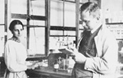 居裏夫婦發現放射性元素鈈,此後居裏夫人又發現了放射性元素鐳,並由此兩次獲得諾貝爾獎。