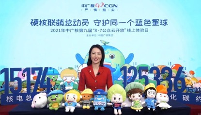 直播中,中廣核不僅集結旗下八大核電基地硬核卡通形象,發布硬核聯萌CGN N-Family公仔盲盒;還公布了核電板塊助力雙碳目標數據裏程碑:減排二氧化碳超過12.5億噸,相當於種植森林超過340萬公頃,可覆蓋北上廣深四座一線城市的總麵積。
