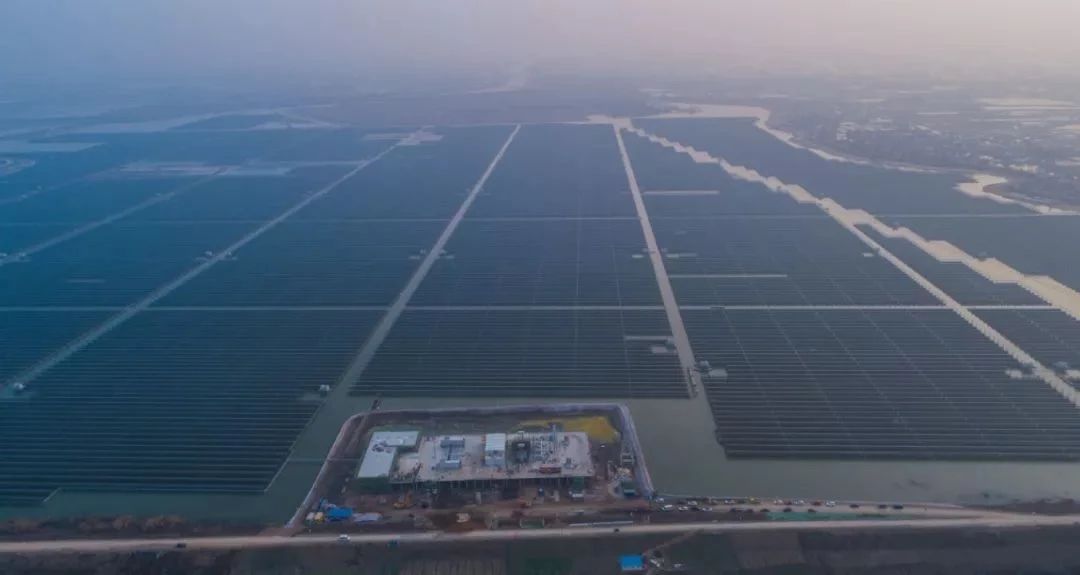 中廣核當塗光伏項目位於安徽省馬鞍山市當塗縣大隴鎮雙潭湖域內,使用水麵約6000畝,建設容量為260MWp。項目自2019年9月16日開工建設,僅曆時98天時間建成。該項目是國家發改委批複的2019年第一批平價光伏項目,是安徽省2019年第一批平價光伏示範項目唯一開工並建成投運的項目,目前也是華東地區單體容量最大的平價光伏項目。