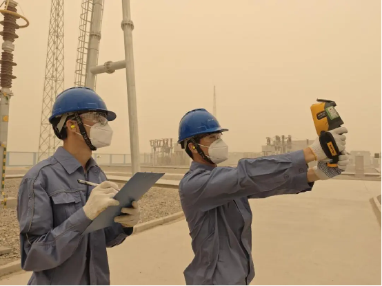 2025年4月那場罕見的特大沙塵暴,至今讓運維人員何東東心有餘悸,“當時風沙預警直接升級為紅色,風速瞬間突破12級,狂風卷著沙礫打在風機塔筒上‘砰砰’作響,連呼吸都覺得嗆得慌!”接到預警後,風電場立即啟動一級應急響應。運維團隊組分成兩組:一組駐守中控室,實時監控每台風機的運行參數;一組頂著狂風沙塵,趕赴故障風機現場。經過4小時連續奮戰,褲腳、鞋子裏灌滿了沙礫,當最後一台故障風機恢複正常時,天邊已經泛起了魚肚白。