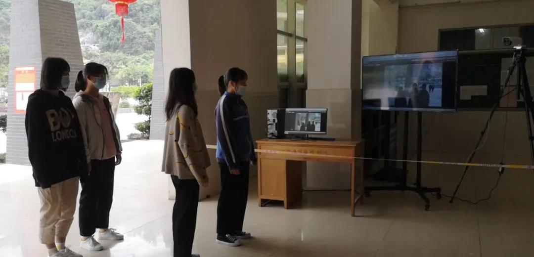 (淩雲縣高中的學生有序通過中廣核捐贈的全自動紅外線測溫儀)
