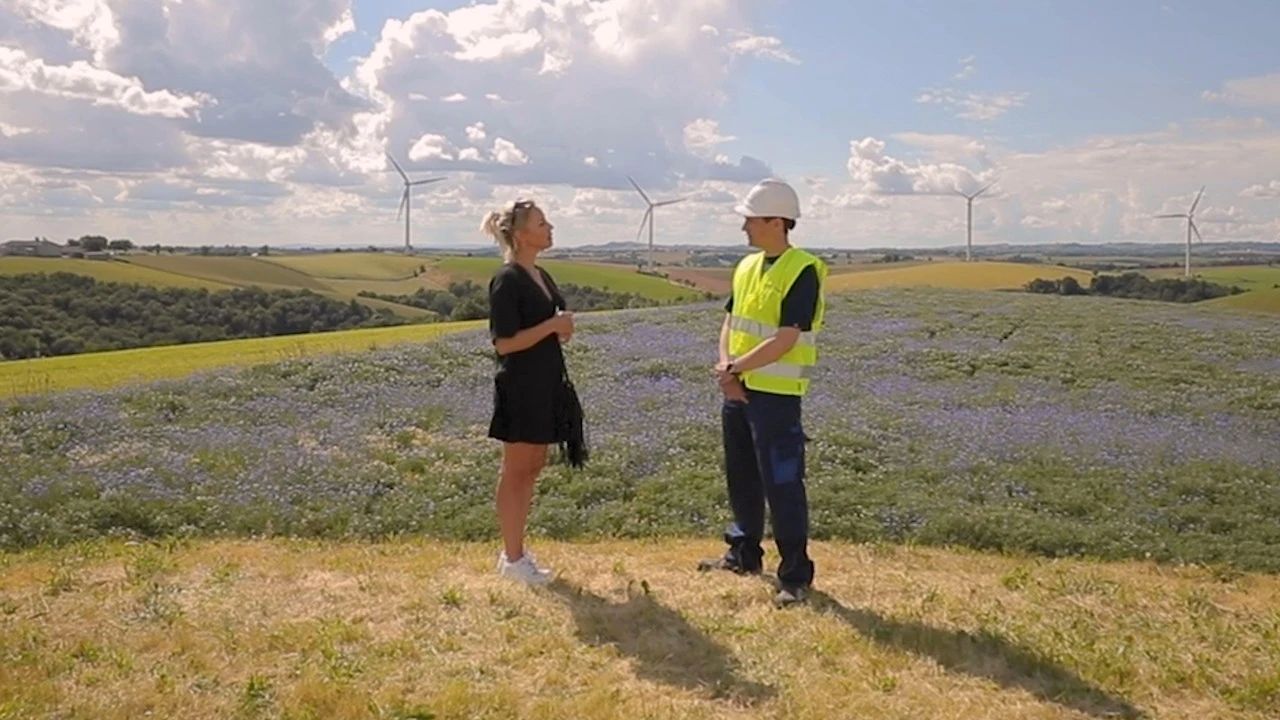 雲開放活動以“從風電場到風車磨坊”為主題。在法國電視台知名主持人夏洛特·布特魯普(Charlotte Bouteloup)的鏡頭帶領下,當地250名小學生、Assac市長米莉亞·維格魯(Myriam Vigroux)、周邊農戶,共同穿越古今,徜徉在“從風電場到風車磨坊”的曆史進程中,沉浸式體驗了風能帶給法國南部Assac小鎮的改變。