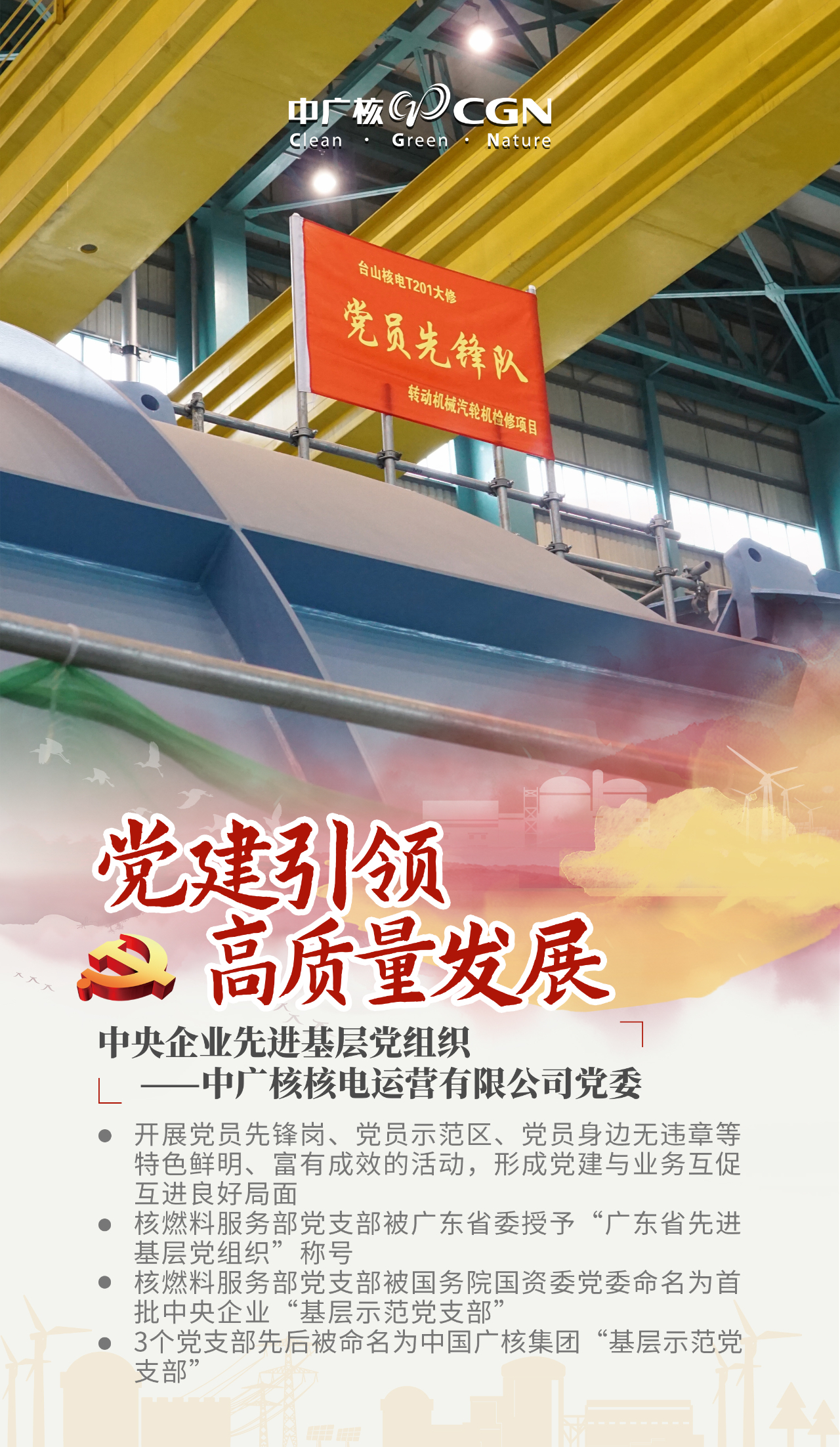2021年7月12日,在國務院國資委黨委召開的中央企業“兩優一先”表彰大會上,中廣核核電運營有限公司(簡稱“運營公司”)黨委被國務院國資委黨委授予“中央企業先進基層黨組織”稱號。