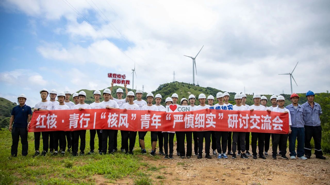 7月16日,遼寧紅沿河核電有限公司團委組織2021屆新員工28人到中國廣核新能源控股有限公司大北山風電場開展“請黨放心,強國有我”主題團日活動暨青年成長第一課。兩單位新老員工結合學習習近平總書記“七一”重要講話精神談心得體會,並在風機現場為新員工講授青年成長第一課,開展“嚴慎細實”交流研討會。