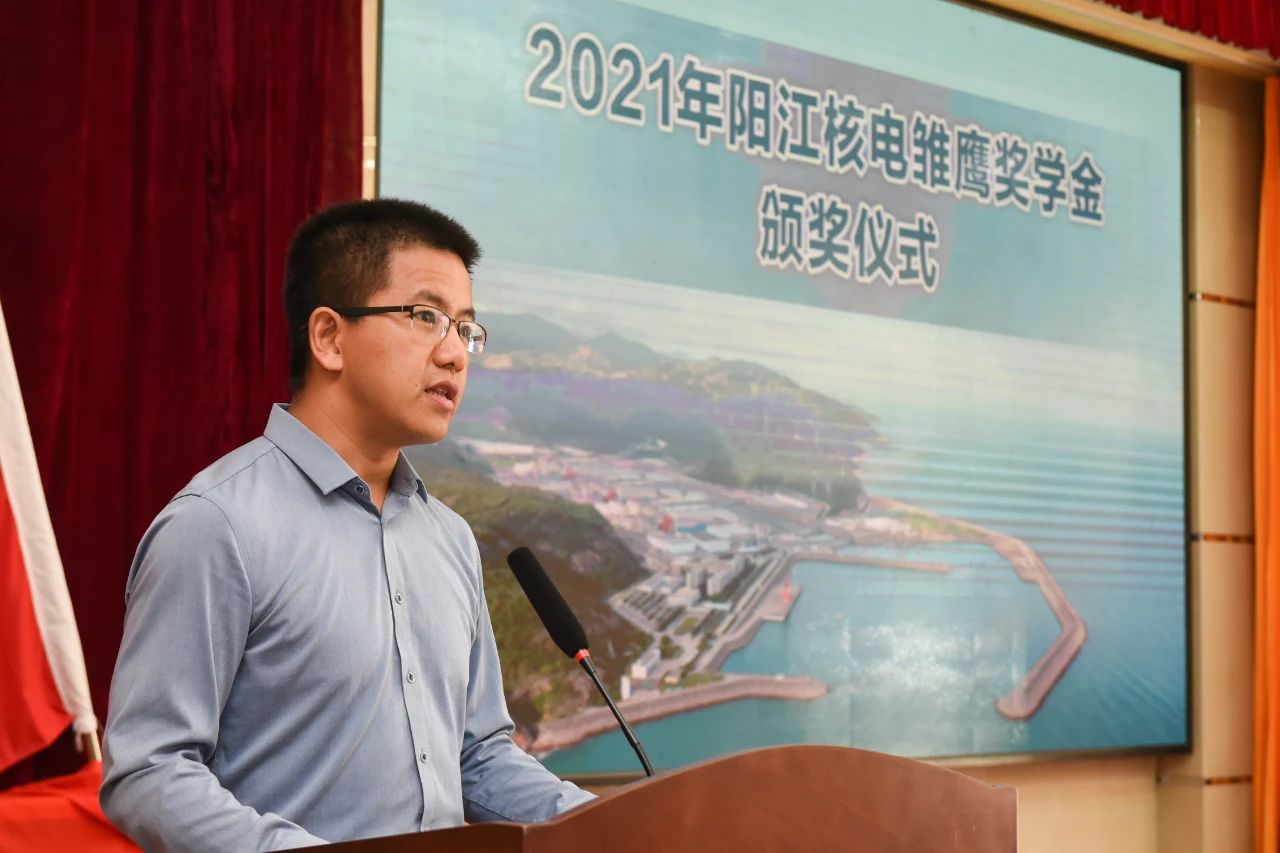 ▲陽江核電黨委副書記葉誌強為學生頒獎