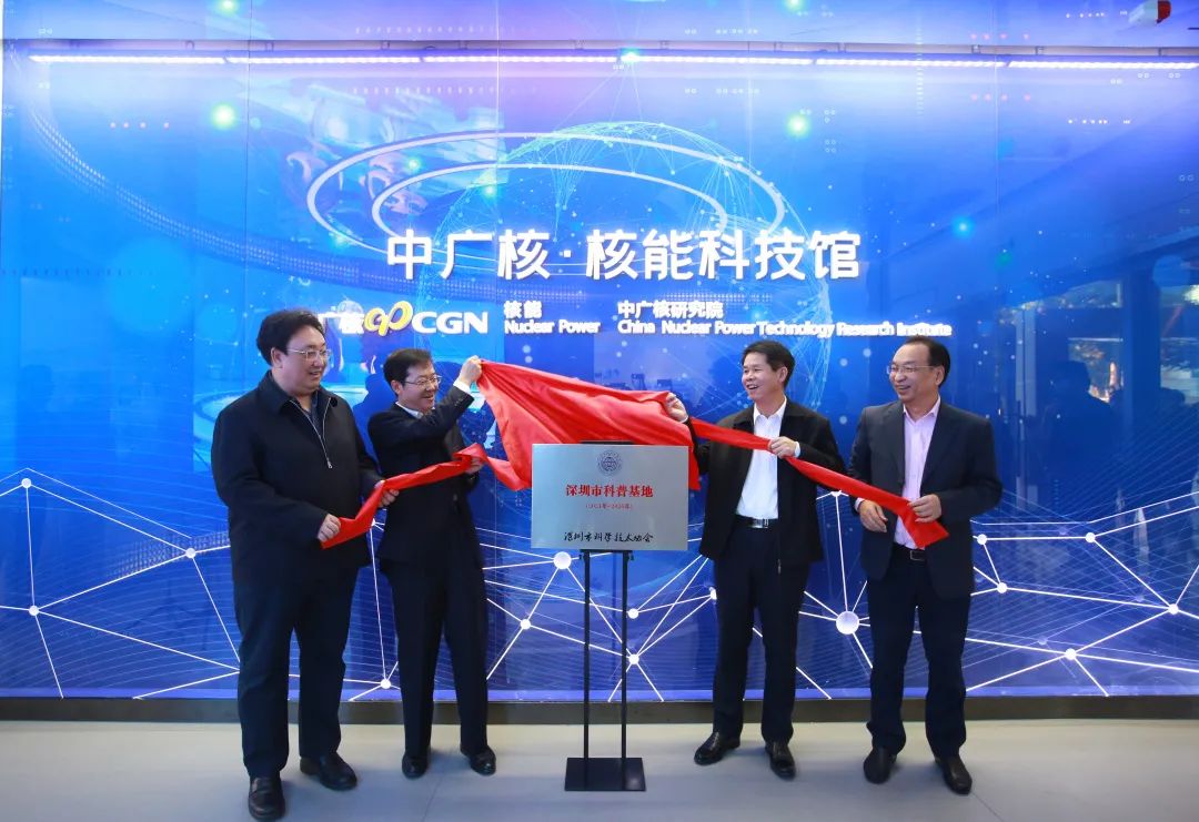 科技展上,由中廣核研究院運營的中廣核核能科技館被深圳市科協認定為“深圳市科普基地”,劉建軍、蔣宇揚、龐鬆濤、王安共同為“深圳市科普基地”揭牌。