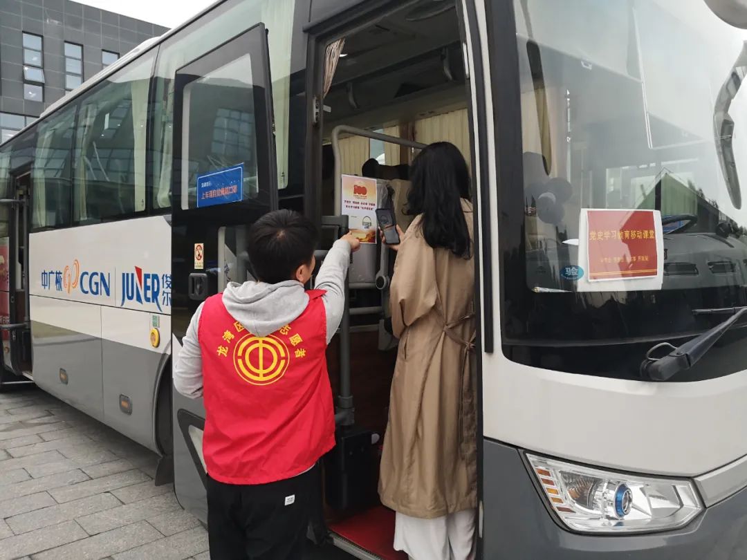 黨支部充分利用員工乘坐班車上下班時間,將班車打造成紅色黨史“流動課堂”,通過車載播音器,每天滾動播放《黨史故事一百講》;組織黨員在車上分享一段黨史故事;組織黨員誌願者在車上開展一次誌願服務活動,使班車成為“紅色專線”和“流動課堂”,讓員工在上下班途中也能持續學習黨史。