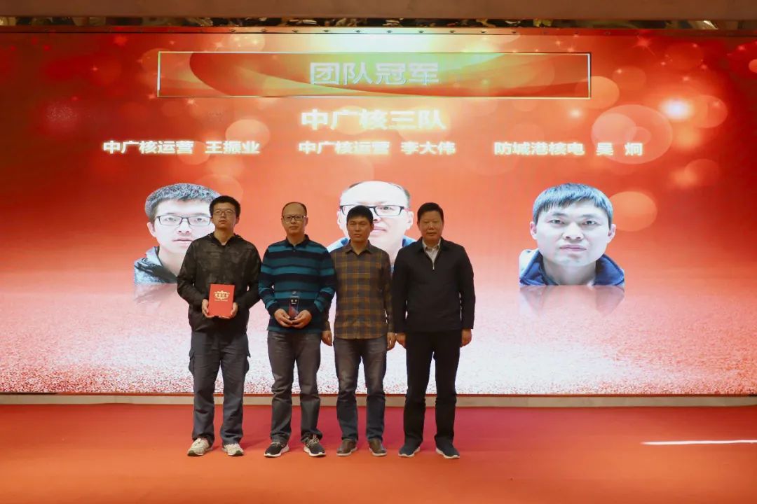 來自中廣核核電運營有限公司的王振業、李大偉以及廣西防城港核電有限公司的吳炯,組成中廣核三隊參賽獲得團體冠軍。來自中廣核核電運營有限公司李大偉、李慶磊以個人總成績第一名、第二名獲得一等獎,報國家人力資源和社會保障部核準後,將被授予“全國技術能手”榮譽稱號。此外,中廣核核電運營有限公司程曉真、王振業,廣西防城港核電有限公司吳炯獲得二等獎;中廣核核電運營有限公司肖書成、陽江核電有限公司宋超、遼寧紅沿河核電有限公司劉計斌獲得三等獎。