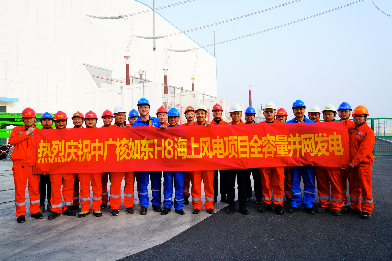 12月11日8時58分,隨著最後一台39#風機葉輪緩緩的轉動,國內離岸距離最遠、風機基礎種類最多的中廣核如東H8#海上風電場實現全容量並網,經亞洲首個海上柔性直流輸電係統向電網源源不斷輸送清潔能源。