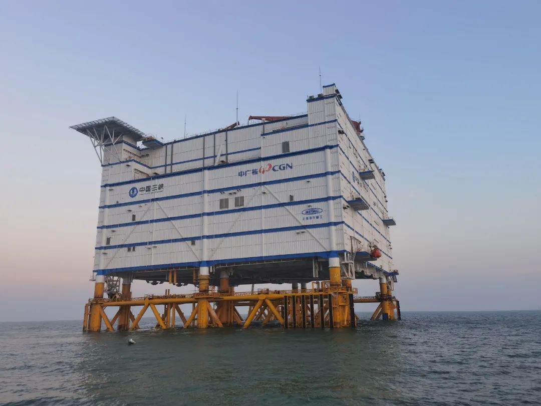 中廣核如東H8#海上風電場位於江蘇省如東縣海上規劃區東側,海域麵積48km²,場區離岸最遠超85km,是國內離岸距離最遠的海上風電場。風電場共布置65台風力發電機組,總裝機容量300MW,是如東海域單機容量最大、地質條件最複雜、建設難度最高的海上風電場。風電場配套建有一座220kV海上升壓站,由交流海纜聯接柔性直流輸電係統海上換流站,整流後經陸上換流站並入係統電網。