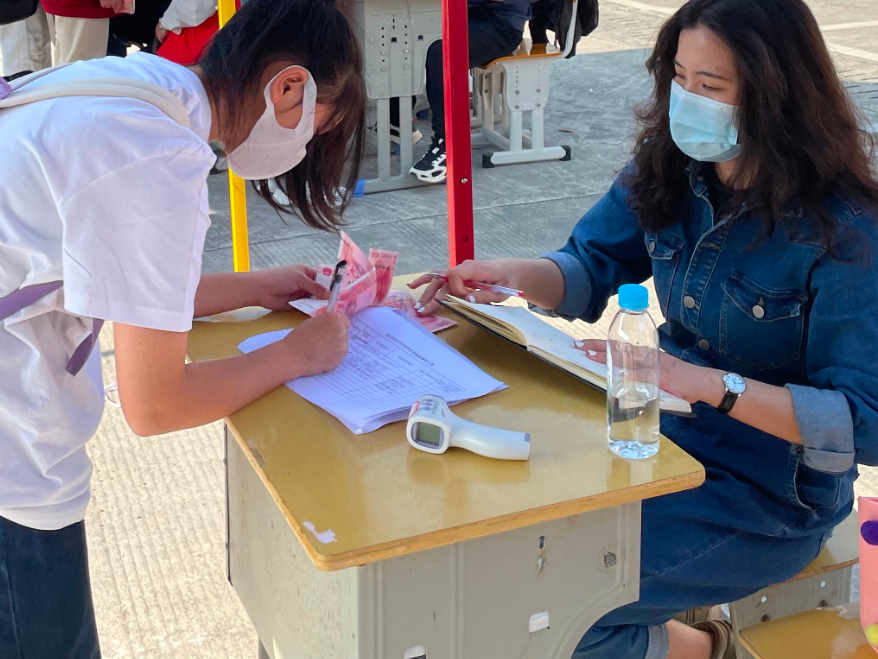近期,中國廣核集團(簡稱“中廣核”)助力廣西百色市淩雲縣中學防控疫情按期開學,淩雲縣中學師生重返校園正式開學複課,師生們戴著口罩,學生按照1米間隔有序排隊,學生在老師的引導下,出示健康碼,測量體溫,更換口罩,進行報到登記。