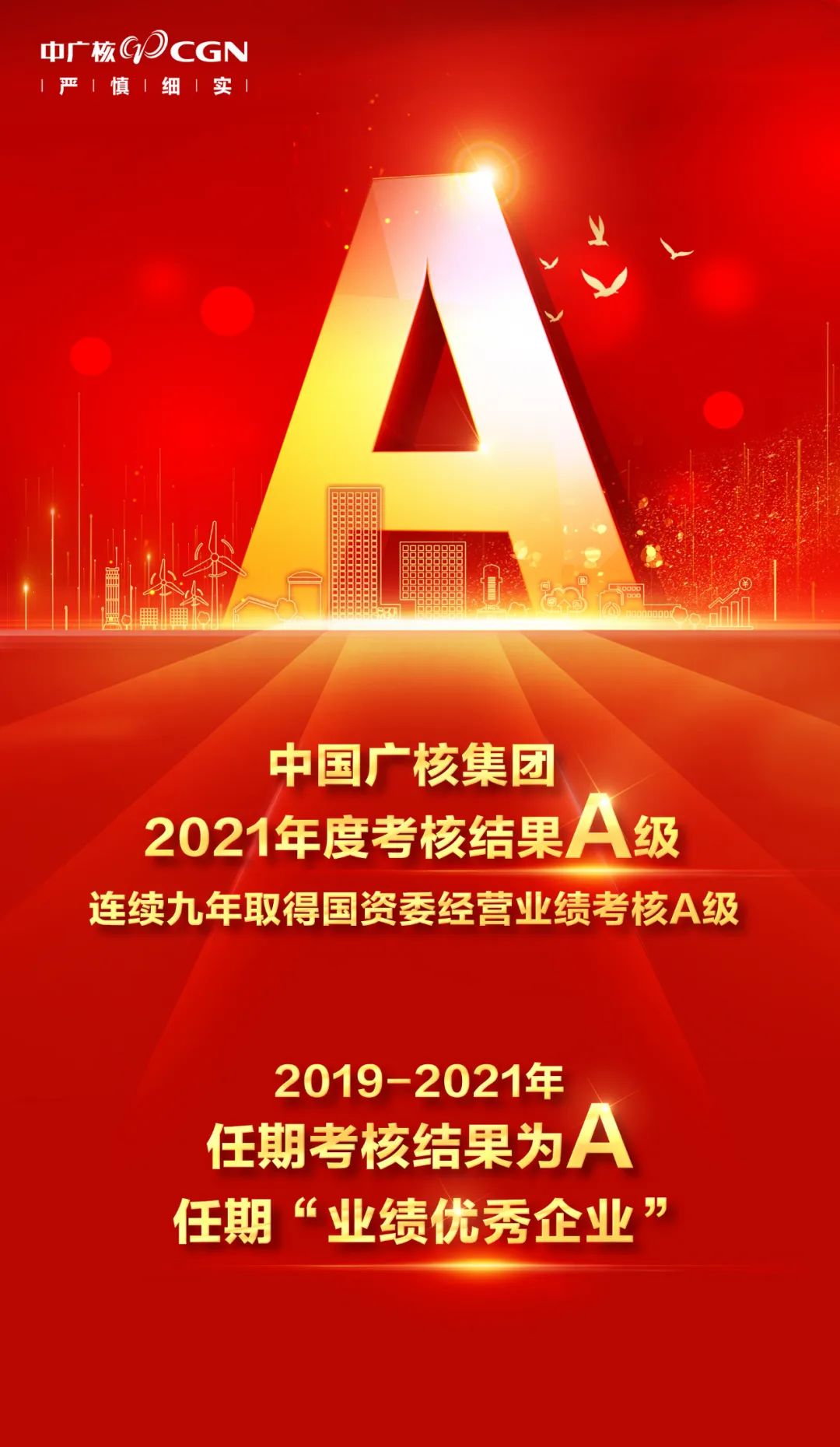 7月17日,國務院國資委正式對外公布了各央企經營業績考核有關結果。中國廣核集團2021年度、2019-2021年任期考核結果均為A,實現連續九年國務院國資委年度考核為A,連續三個任期年度及任期考核“雙A”。同時,國務院國資委還授予中廣核2019-2021年任期考核“業績優秀企業”稱號。