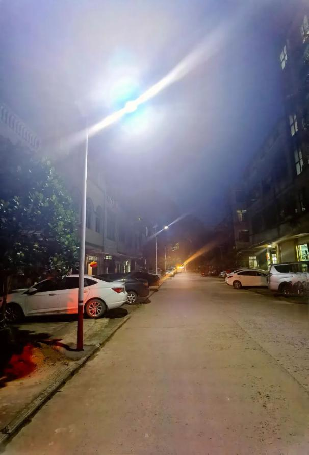 光坡鎮大坡社區的主幹道上,新“上崗”的柱式LED太陽能路燈次第亮起,照亮了村民夜晚出行的“平安路”。
